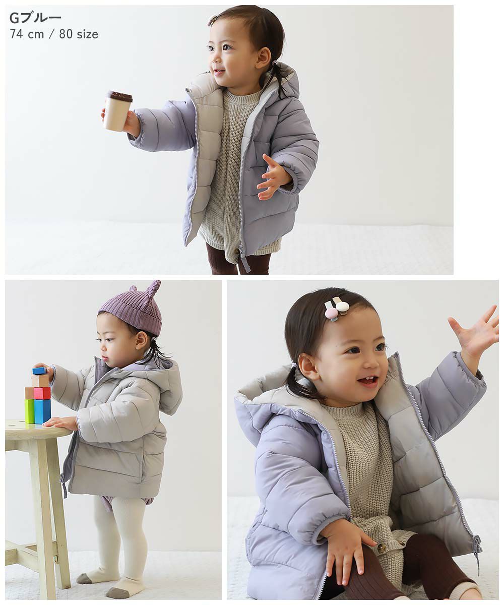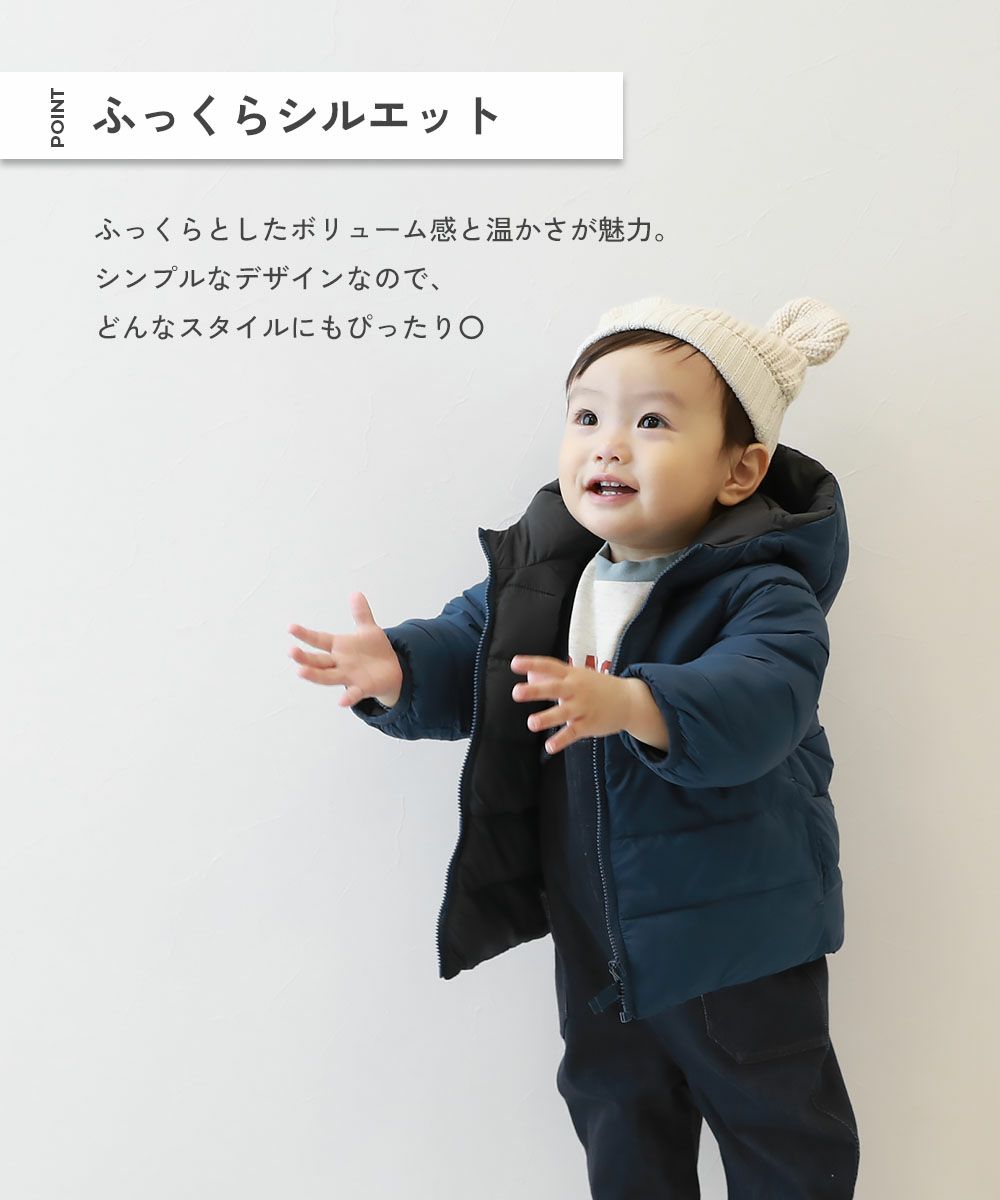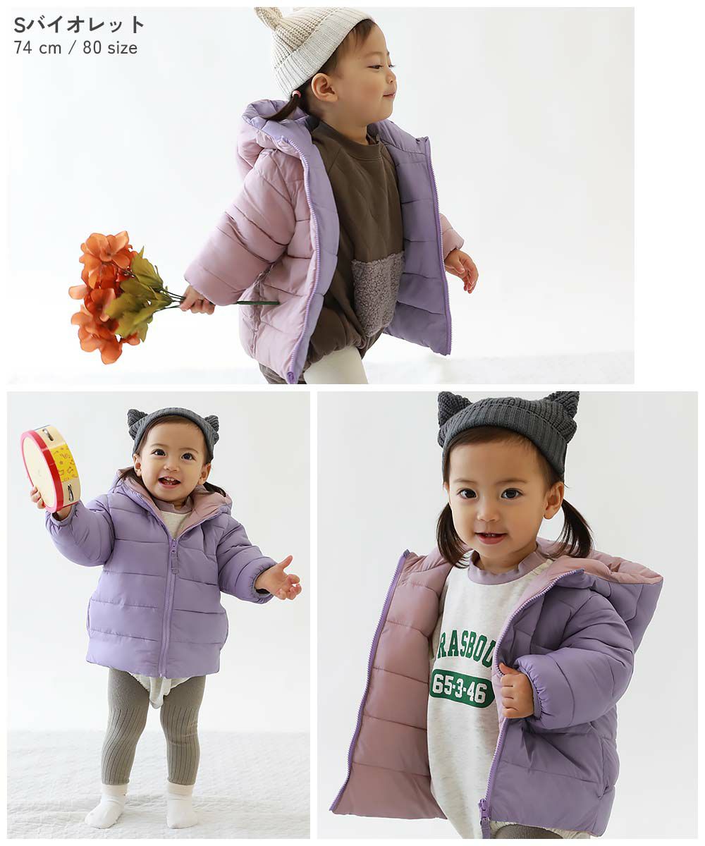 寒い日のお出かけにぴったりな『洗える ファイバーダウン ベビー リバーシブル ふっくら ジャケット』