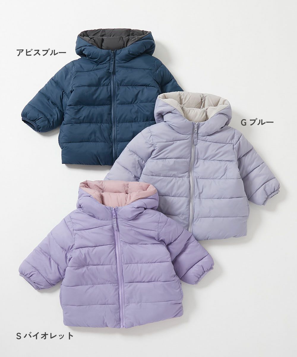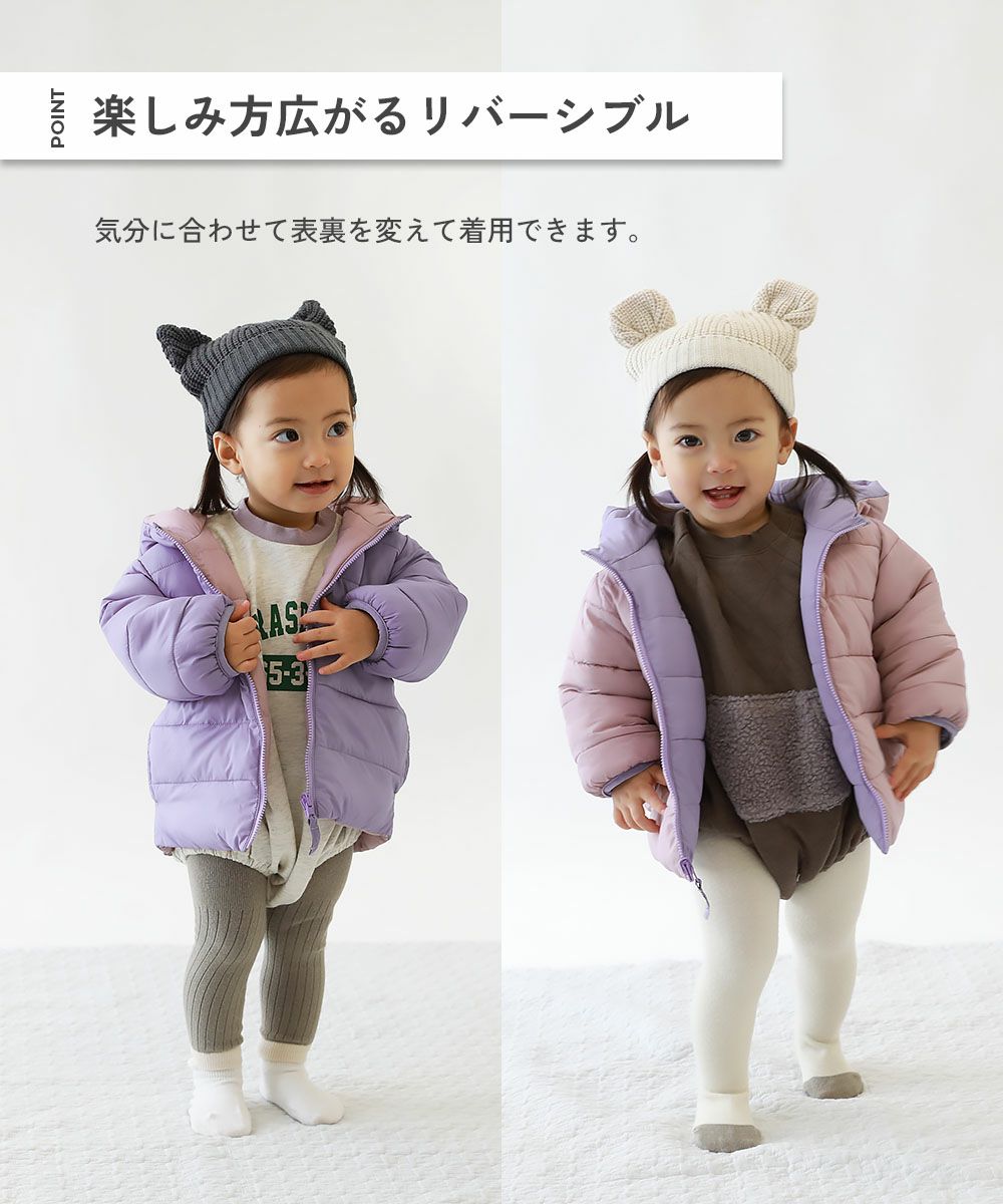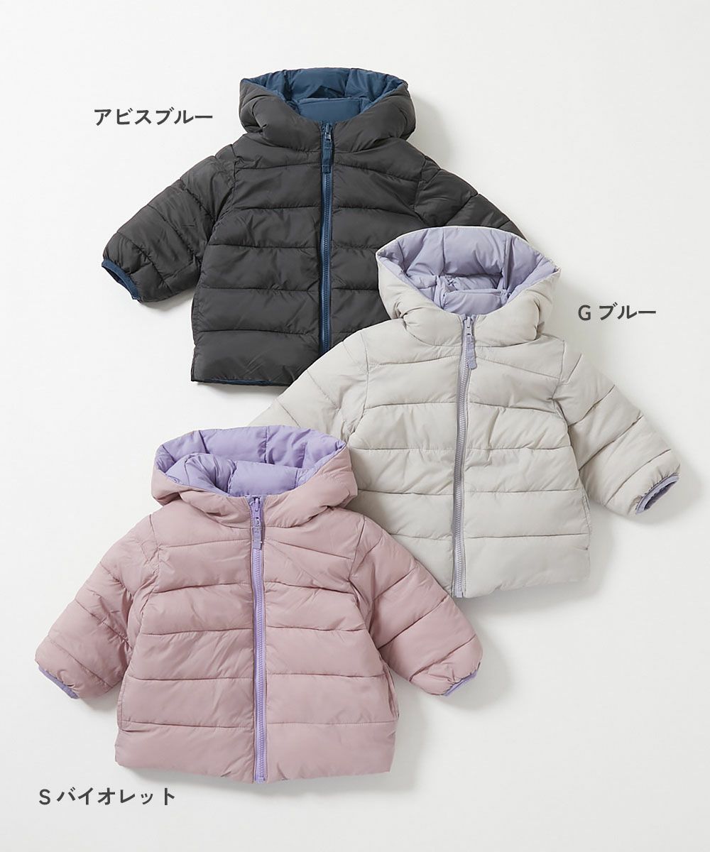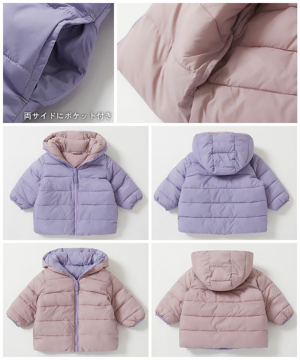 寒い日のお出かけにぴったりな『洗える ファイバーダウン ベビー リバーシブル ふっくら ジャケット』