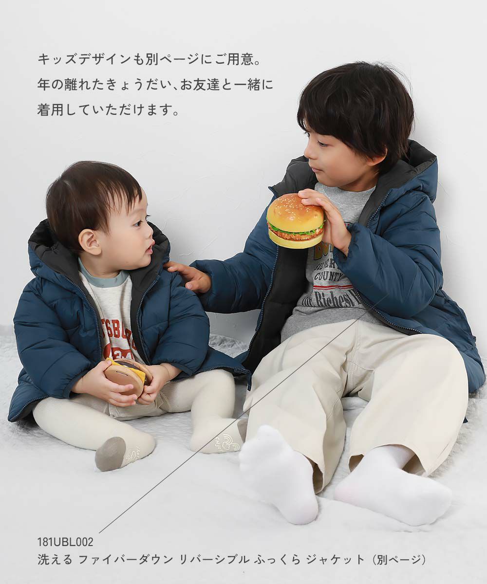 キッズデザインも別ページにご用意(181UBL002 洗える ファイバーダウン リバーシブル ふっくら ジャケット)。