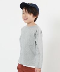 すっきり大人シルエットの『綿100% 無地 ポケット付き クルーネック 長袖Tシャツ』