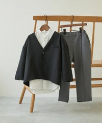 コーディネートが完成『【シャツ付き】フォーマル ノーカラージャケット ロングパンツ 3点セット』