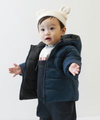 寒い日のお出かけにぴったりな『洗える ファイバーダウン ベビー リバーシブル ふっくら ジャケット』