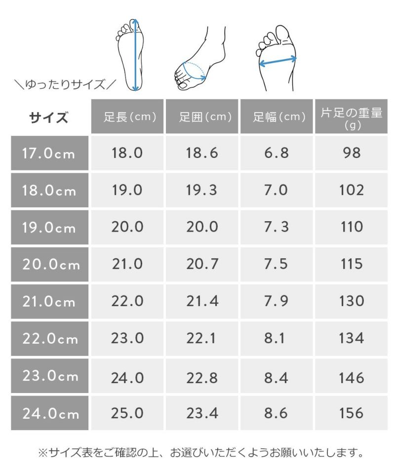 サイズ展開は、16.0、17.0、18.0、19.0、20.0、21.0、22.0、23.0です。