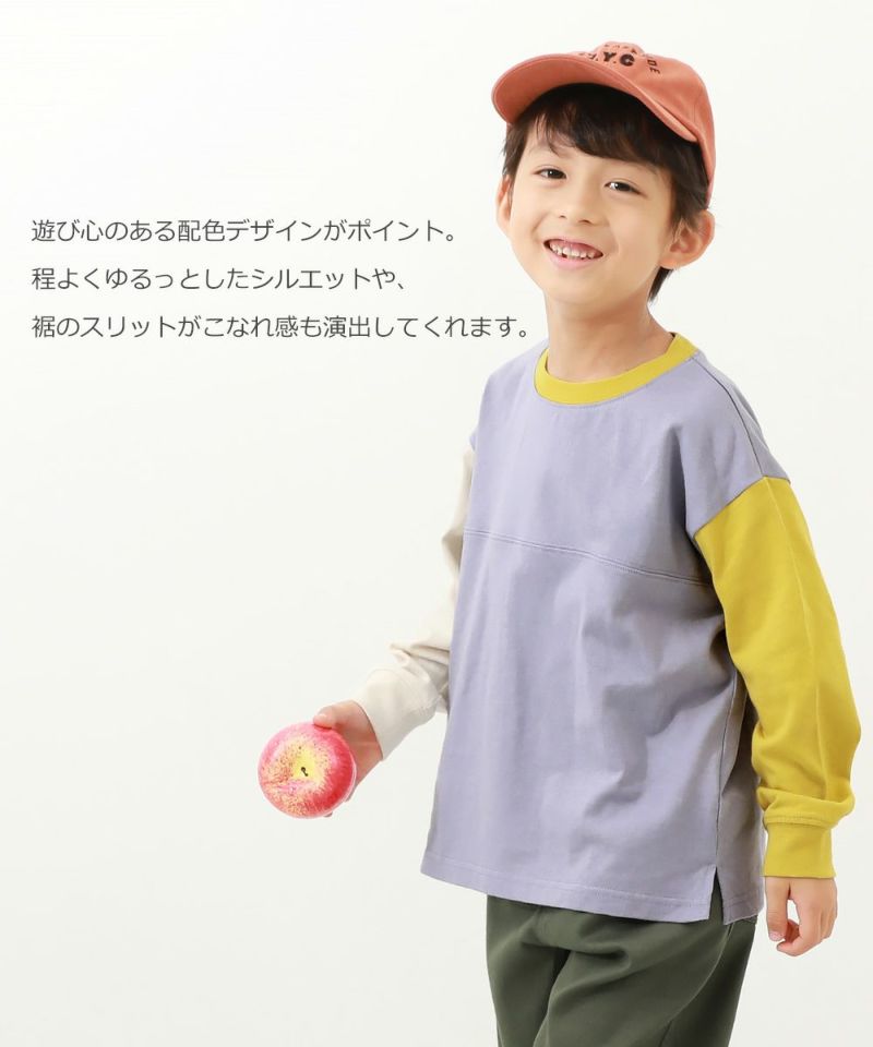 【10%OFF】綿100% デビラボ プリント袖リブ 長袖Tシャツ
