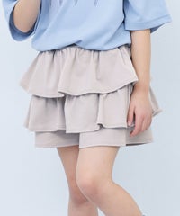 Tシャツやキャップを合わせて、カジュアルなスタイリングに仕上げるのがおすすめ。 スカパンが程よく女の子らしさを加えてくれます。