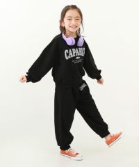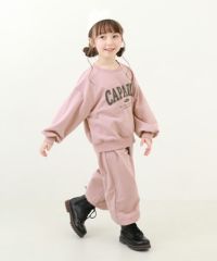 ゆるっとかわいい『【普段着でもルームウェアでも】ガールズ ミニ裏毛 カレッジロゴ セットアップ』