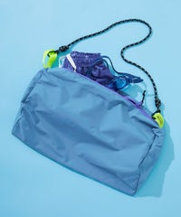 親子で一緒に使えるデザイン、サイズ感にこだわりました。 固いプールバッグは当たると痛くて苦手。 という子にもおすすめな、やわらかい素材を使用しているのもポイント。 コードの取り外しもできるので、ポーチやバッグインバッグとしての使用もおすすめ。 フックなどに引っ掛けられるループを付けるなど、使いやすさにもこだわったアイテムです。