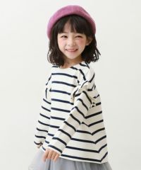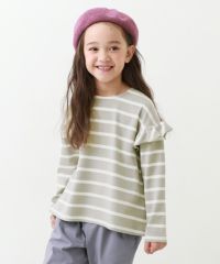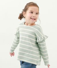 程よく甘い『もちもちストレッチ 肩フリル 先染めボーダー 長袖Tシャツ』