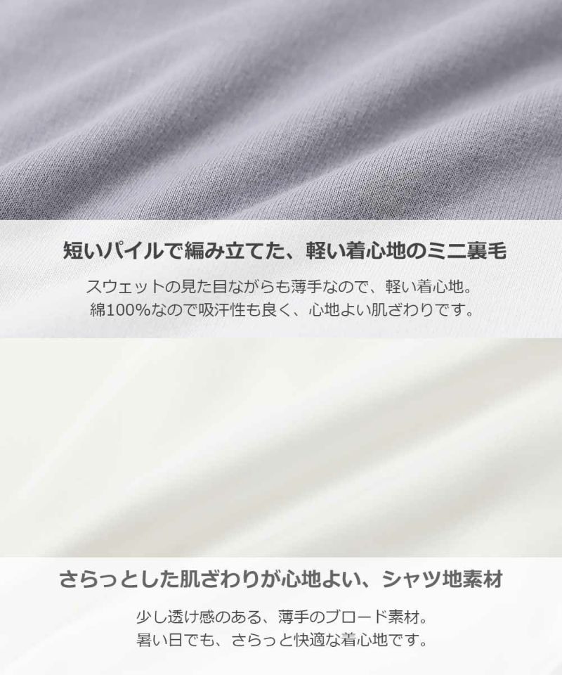 ・素材1:短いパイルで編み立てた、軽い着心地のミニ裏毛