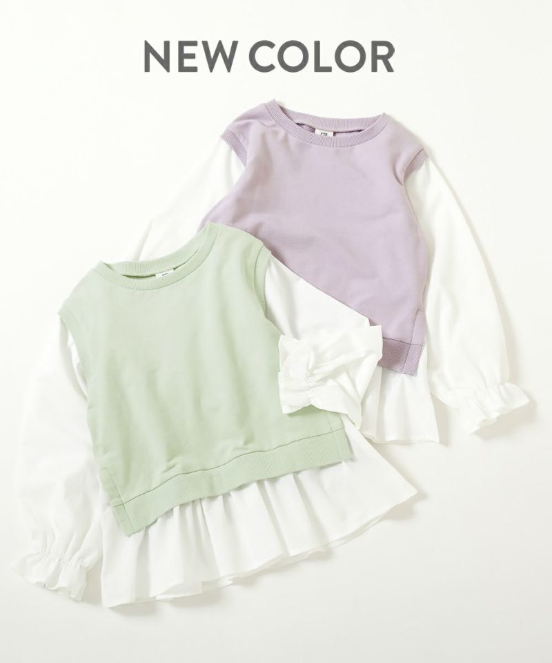 ガーリールックな『ベストドッキング風 長袖Tシャツ』