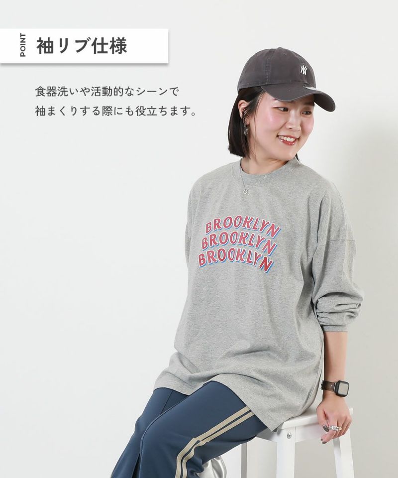 ・009,010 :180UDL004 デビラボ BIGシルエット プリント袖リブ 長袖Tシャツ