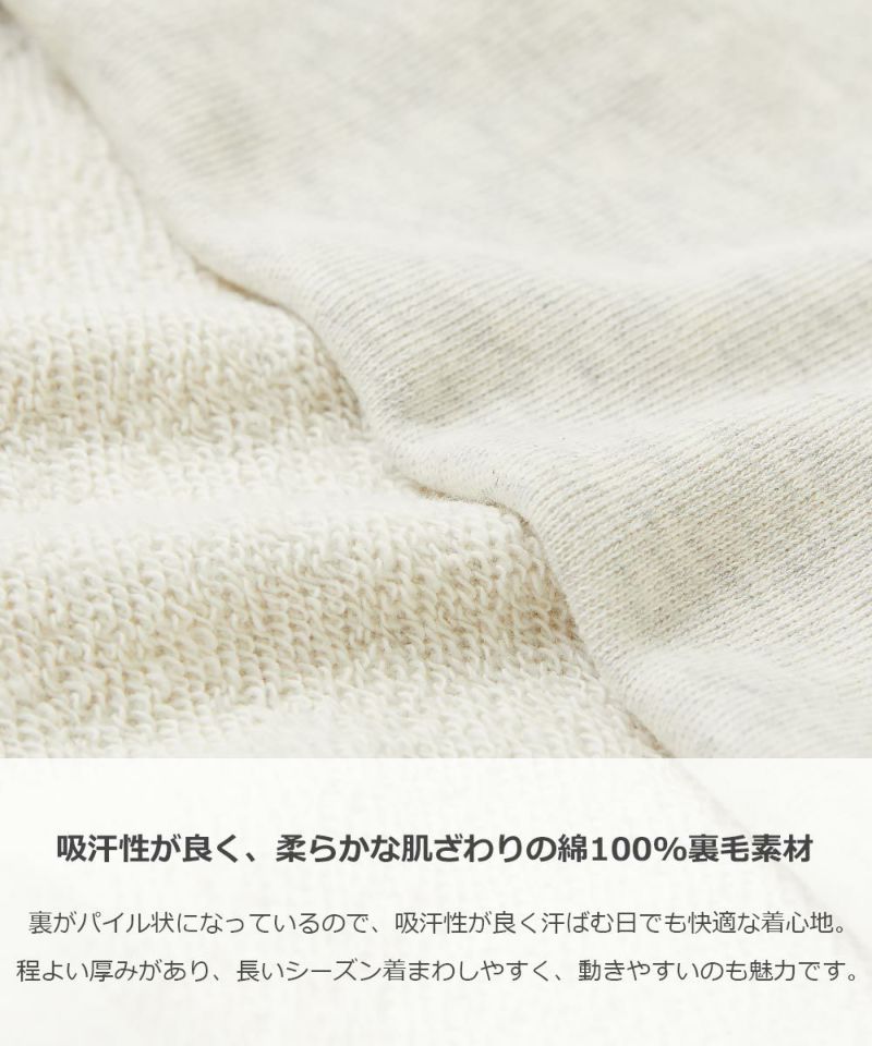 吸汗性が良く、柔らかな肌ざわりの綿100%裏毛素材