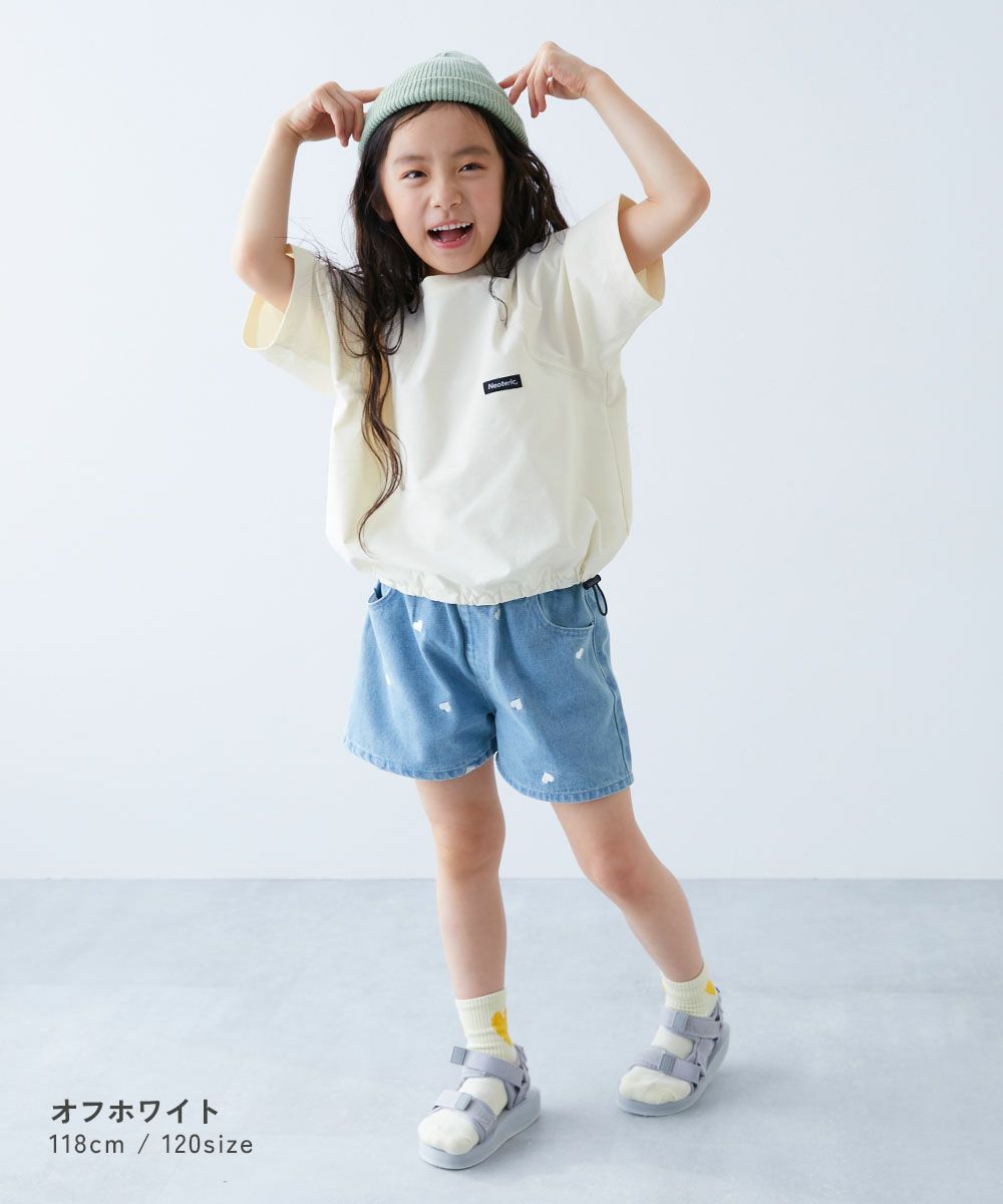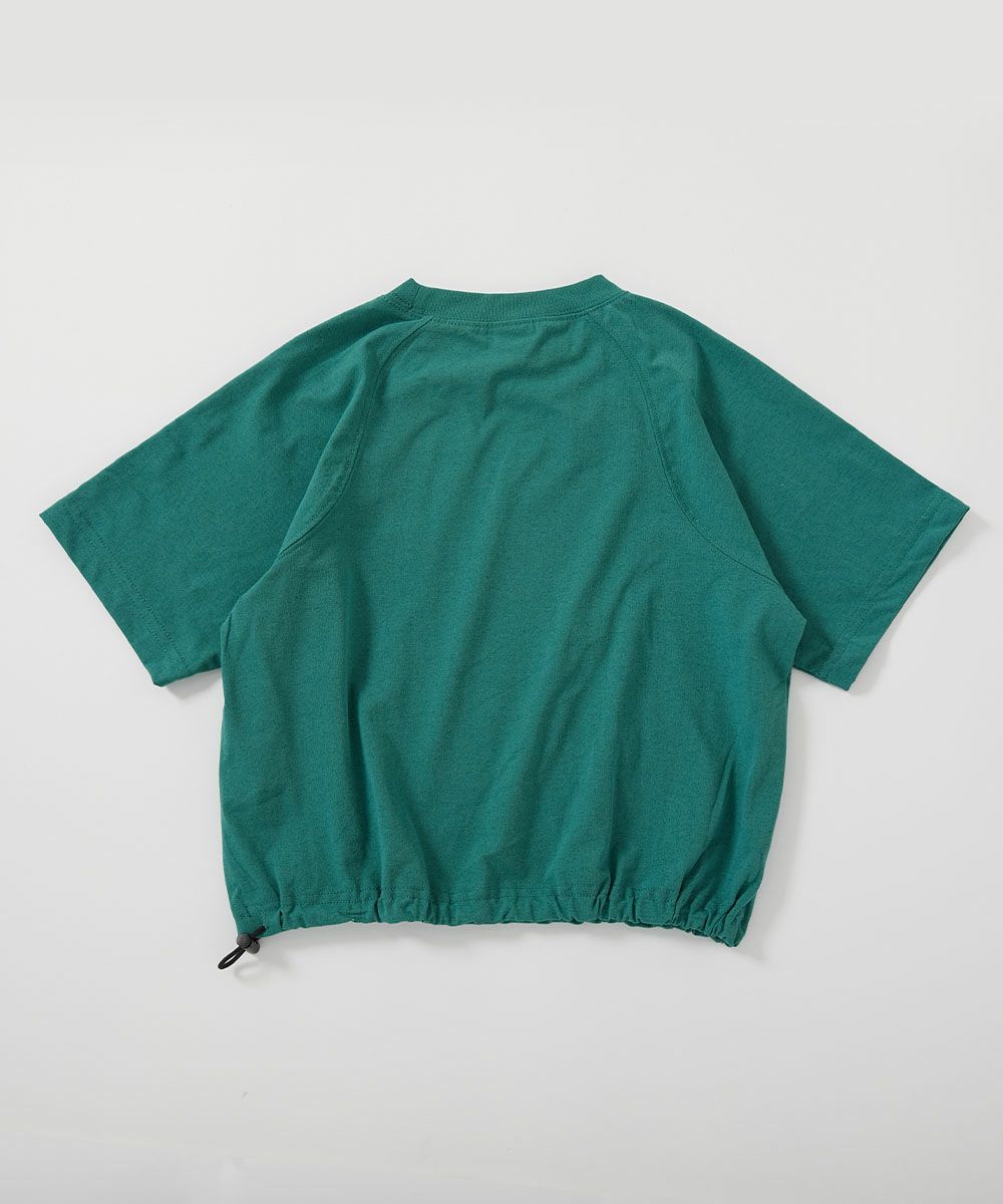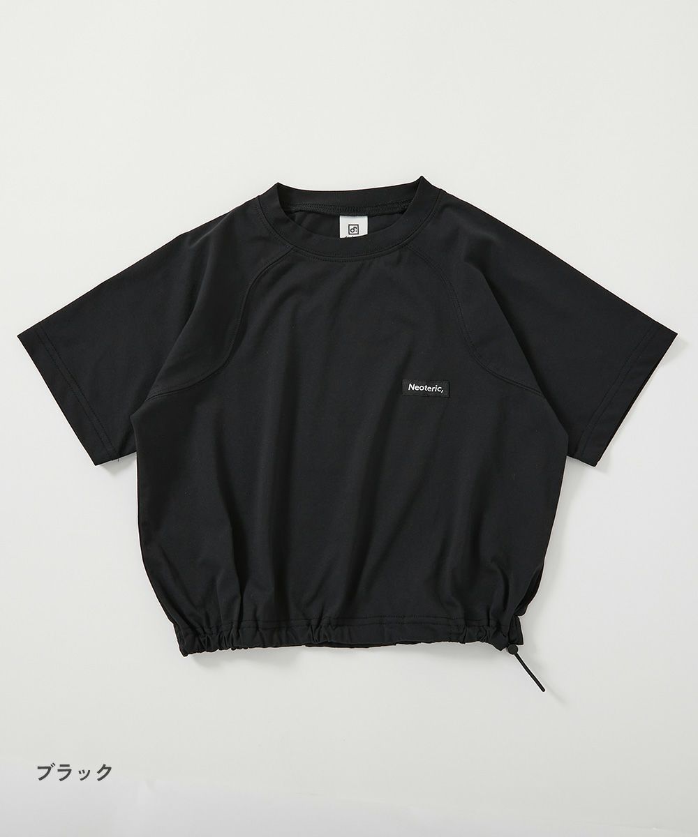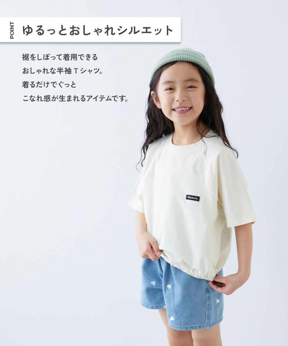 裾をしぼって着用できるおしゃれな半袖Tシャツ。