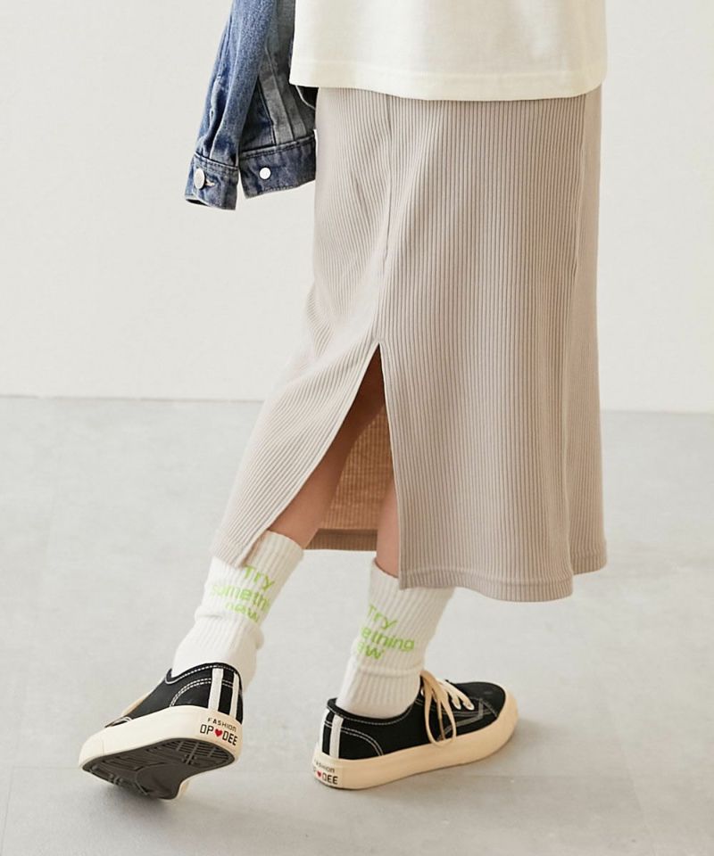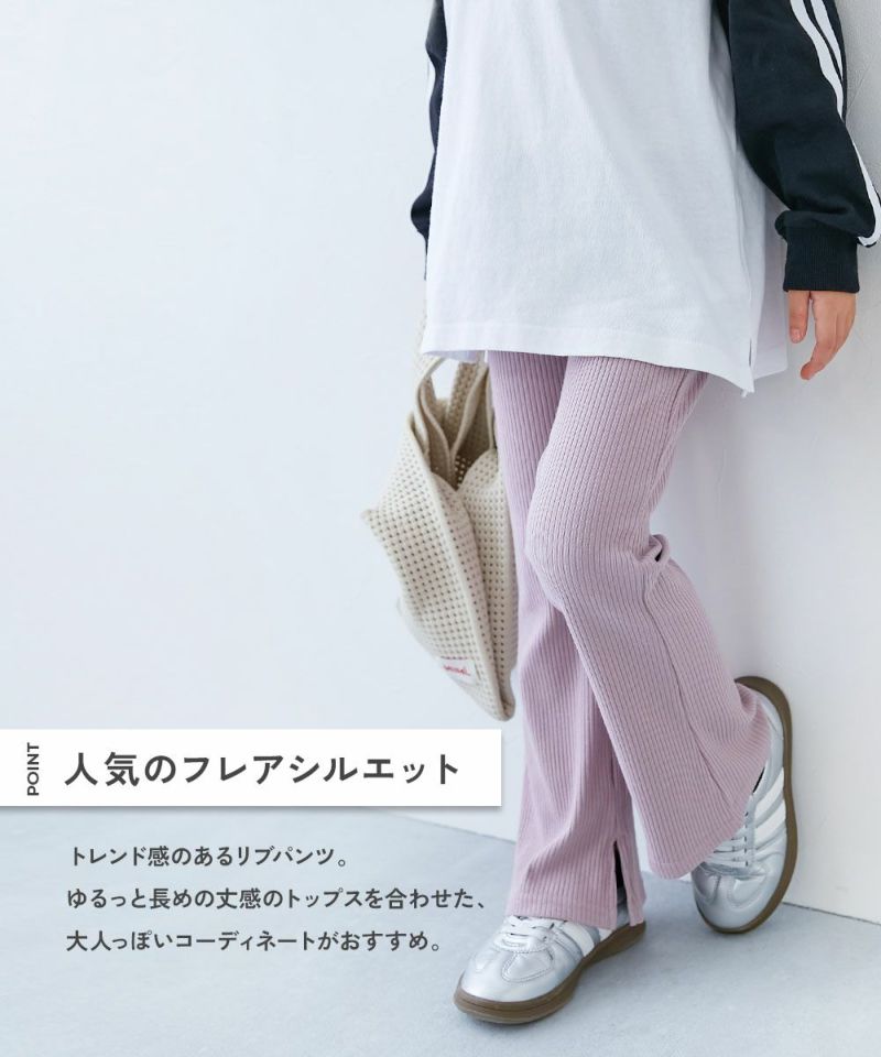 すらっと脚長 リブフレアパンツ
