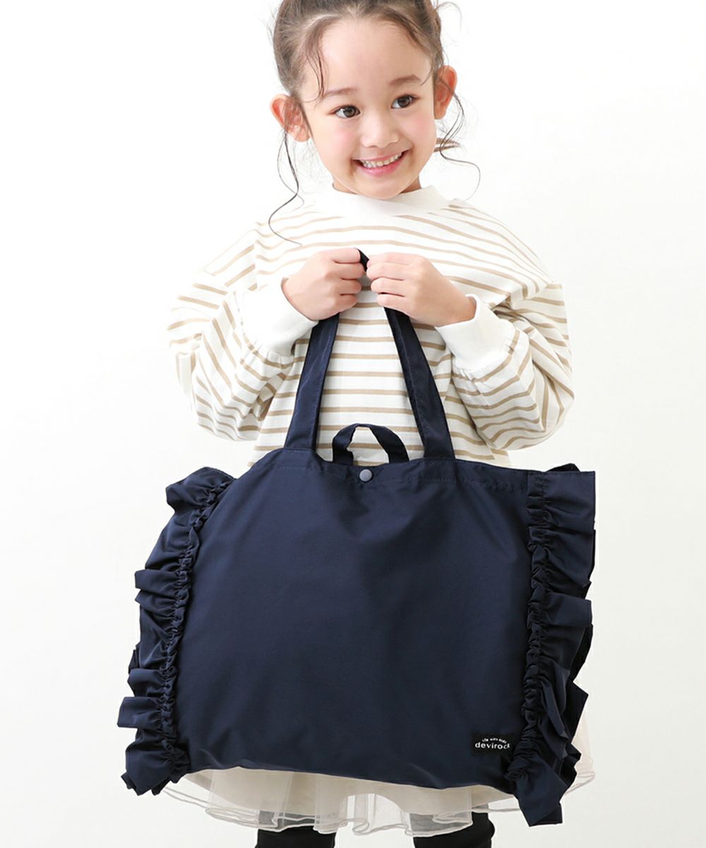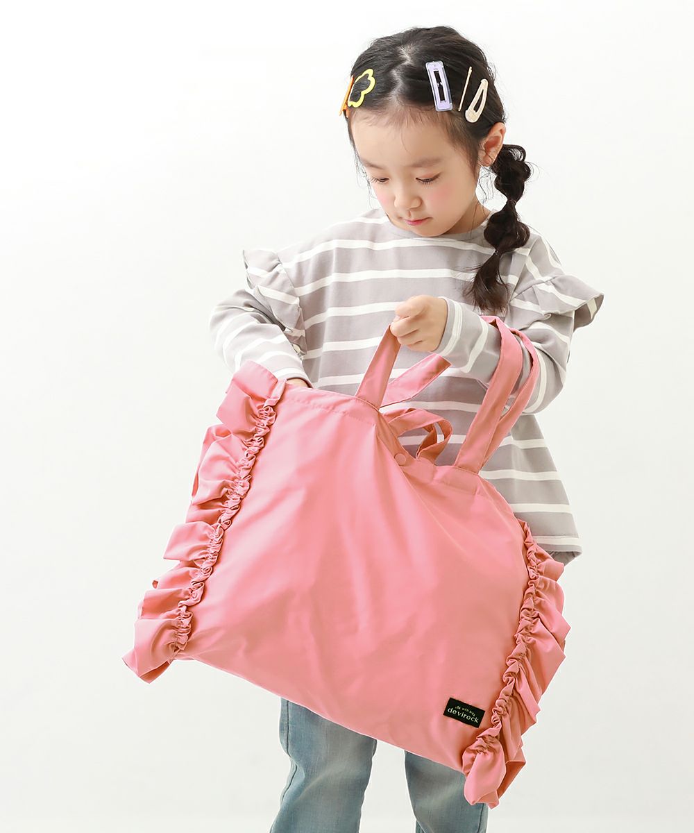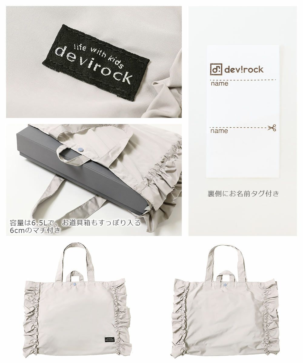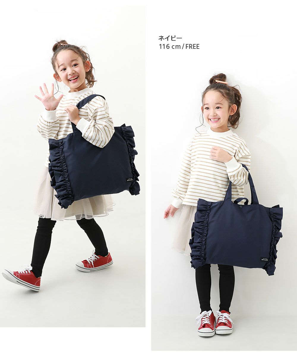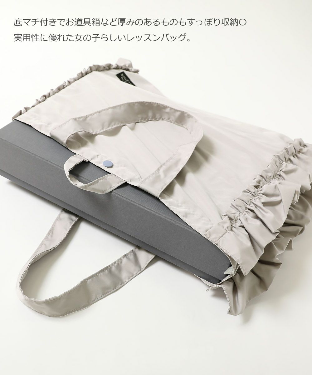 サイドのフリル使いがかわいいレッスンバッグ。