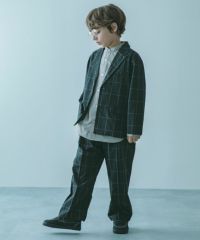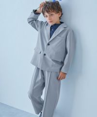 テーラードジャケットと、程よくゆるっとしたワイドストレートパンツのセットアップ。