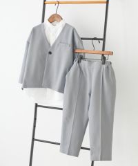 コーディネートが完成『【シャツ付き】フォーマル ノーカラージャケット ロングパンツ 3点セット』