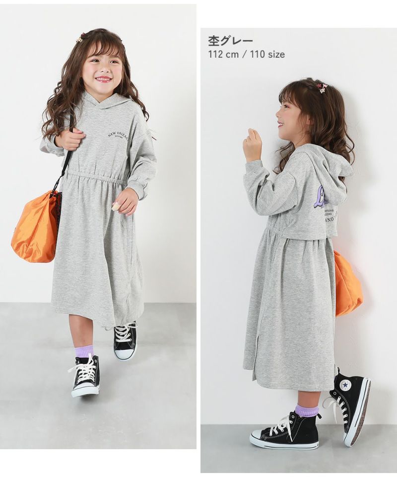 胸元とバックにプリントがデザインされたパーカーワンピース。
