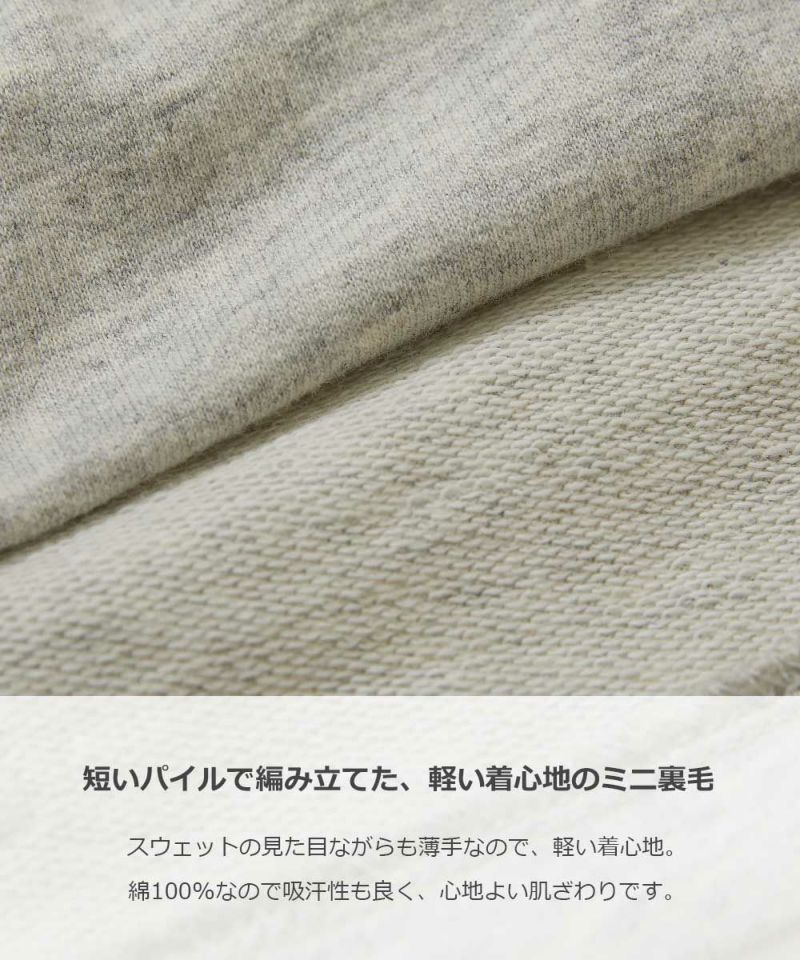 短いパイルで編み立てた、軽い着心地のミニ裏毛