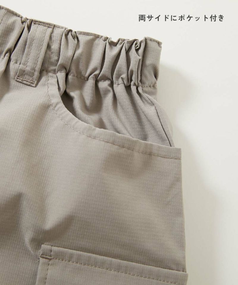 長時間着用してもシワになりにくい素材を使用したハーフパンツ。