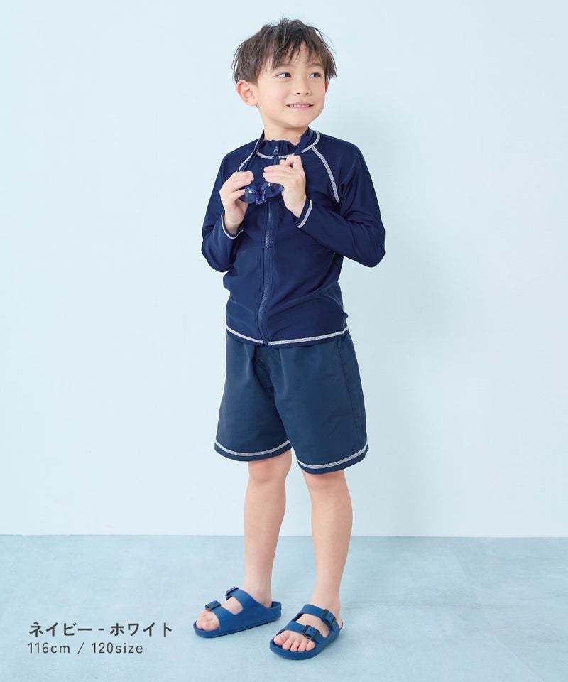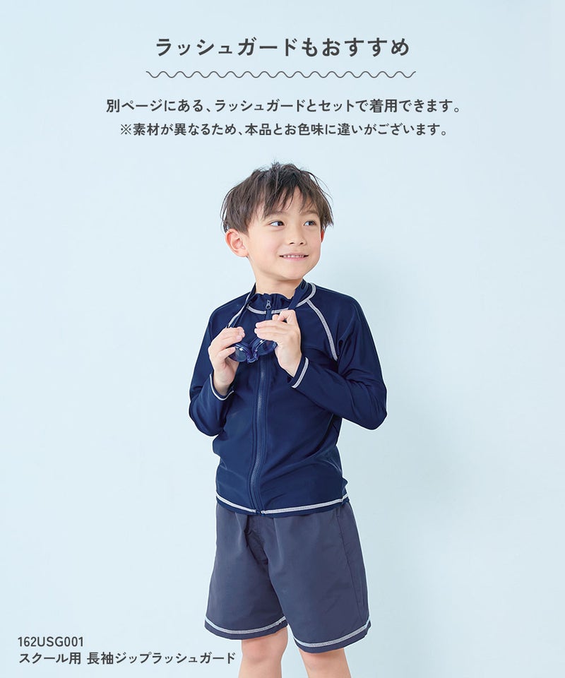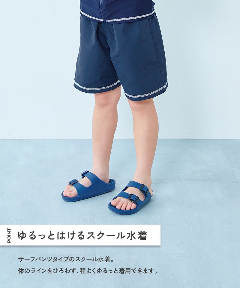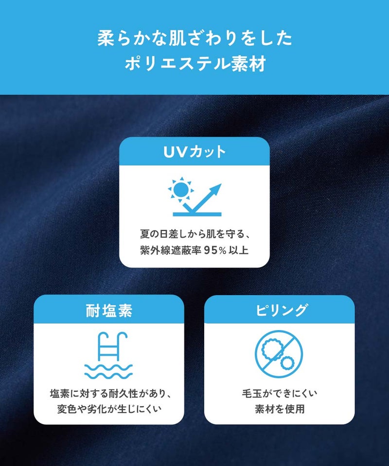 体のラインをひろわず、程よくゆるっと着用できるのがポイント。 水泳の授業や習い事にぴったりな1枚です。 毎日の紫外線からお子さまの肌を守れるよう、遮蔽率90%以上の素材を使用しました。