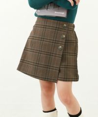トレンド感のある『裏起毛 チェック&無地 ラップスカート風パンツ』