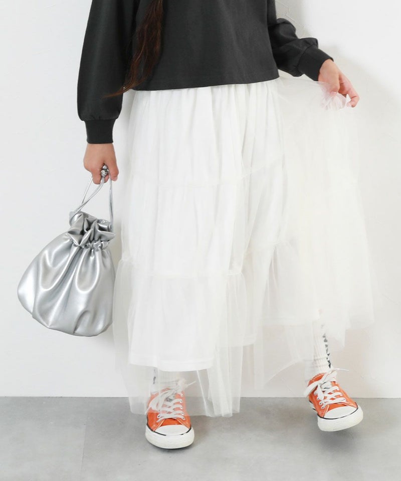 ふんわり軽やかなチュール素材 チュールを重ねることで、ふんわりとしたシルエットを実現。 薄くて柔らかな風合いが特徴です。 伸縮性:なし