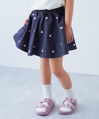 小さなハートをたくさん詰め込んだデニムスカッツ。