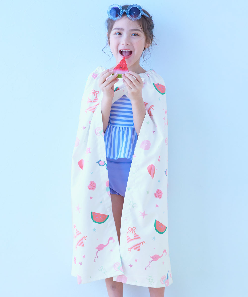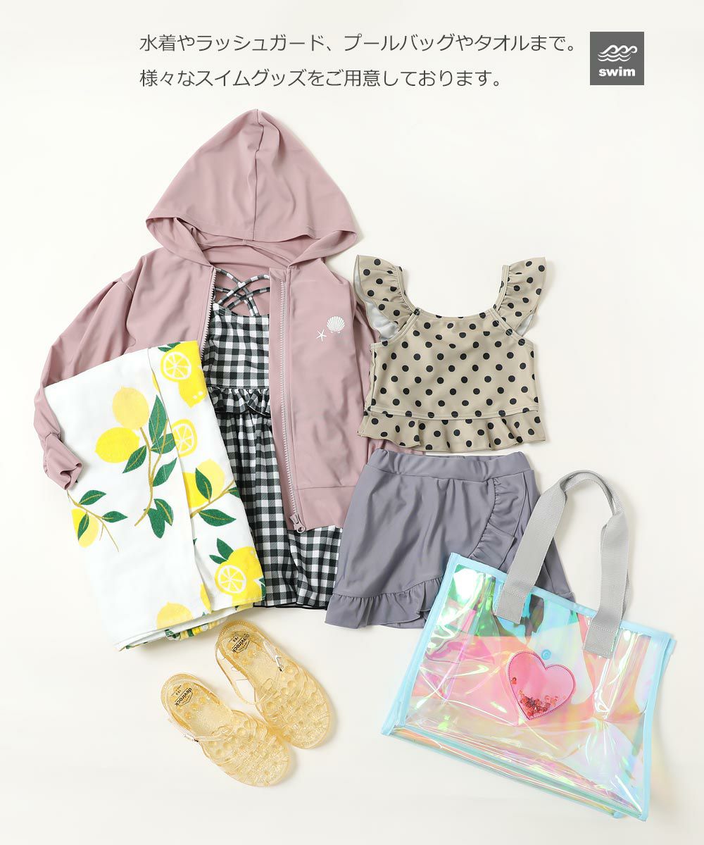 学校や習いごとにピッタリのスクール水着からレジャー用のサーフパンツやワンピース水着、UVカット機能のついたラッシュガードやお着替え時のマストアイテム、ラップタオルなど、海やプールで大活躍のアイテムをそろえています。