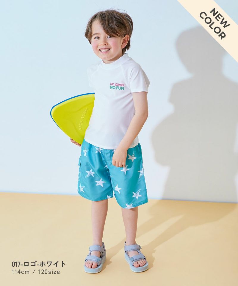 UVカット プリント半袖ラッシュガード&総柄サーフパンツ セットアップ水着