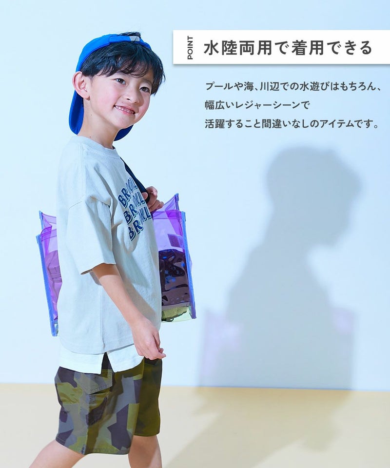 ちょっぴり背伸びしたスイムスタイルが楽しめます。 水の中での着用はもちろん、水場でのレジャーシーンにもおすすめのアイテムです。 毎日の紫外線からお子さまの肌を守れるように、遮蔽率90%以上の素材を使用しています。