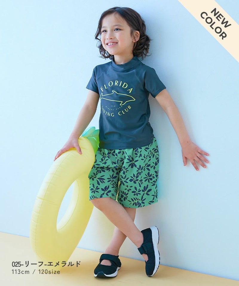 UVカット プリント半袖ラッシュガード&総柄サーフパンツ セットアップ水着