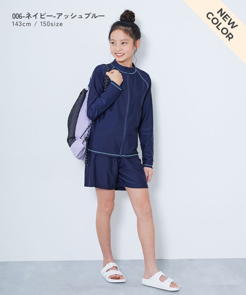 太すぎず細すぎないシルエットは、泳ぎやすく水着の上からでも着やすいところがポイント。 男女問わず着こなしやすいアイテムです。 毎日の紫外線からお子さまの肌を守れるよう、遮蔽率95%以上の素材を使用しています。