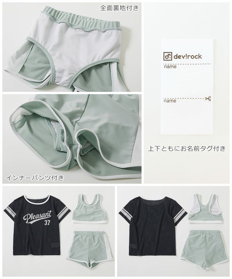 メッシュトップスがついた3点セットの水着。