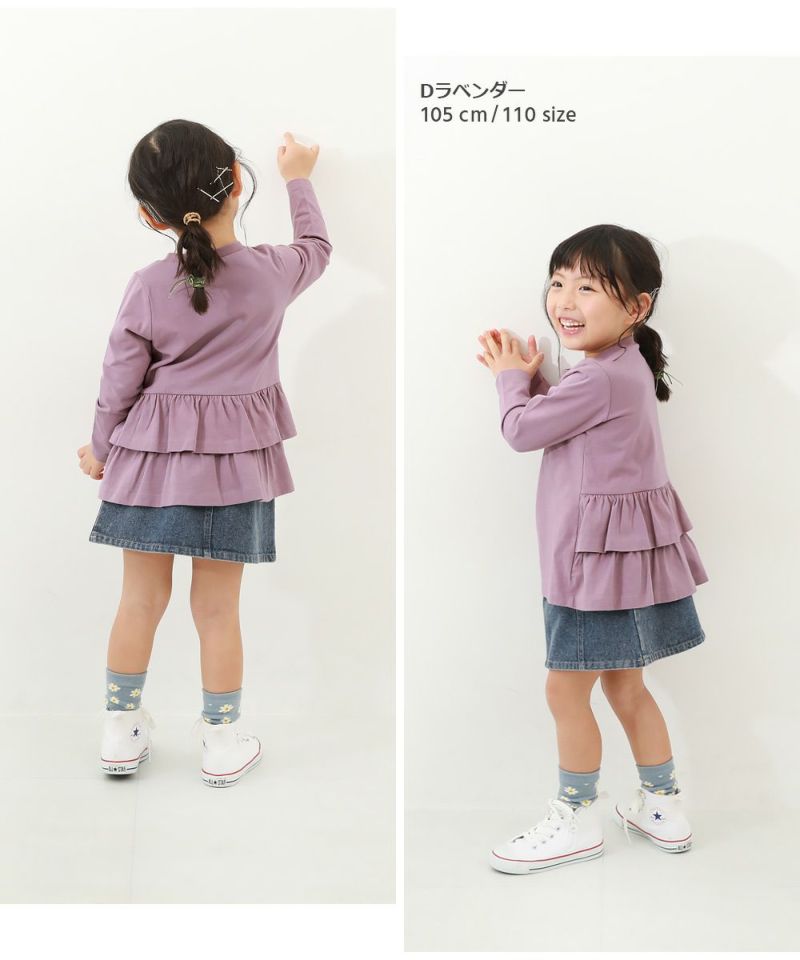 バックにたっぷりフリルをデザインした1枚。 後ろ姿もこだわりたい女の子にぴったりなアイテムです。