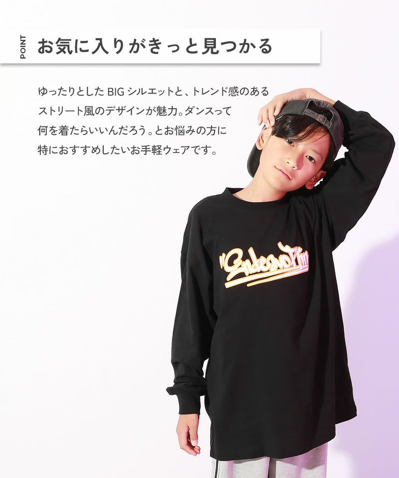 お気に入りがきっと見つかる『【DANCE】綿100% BIGシルエット プリント 袖リブ 長袖Tシャツ』