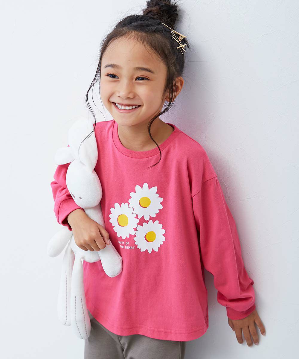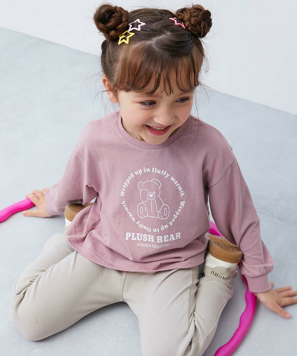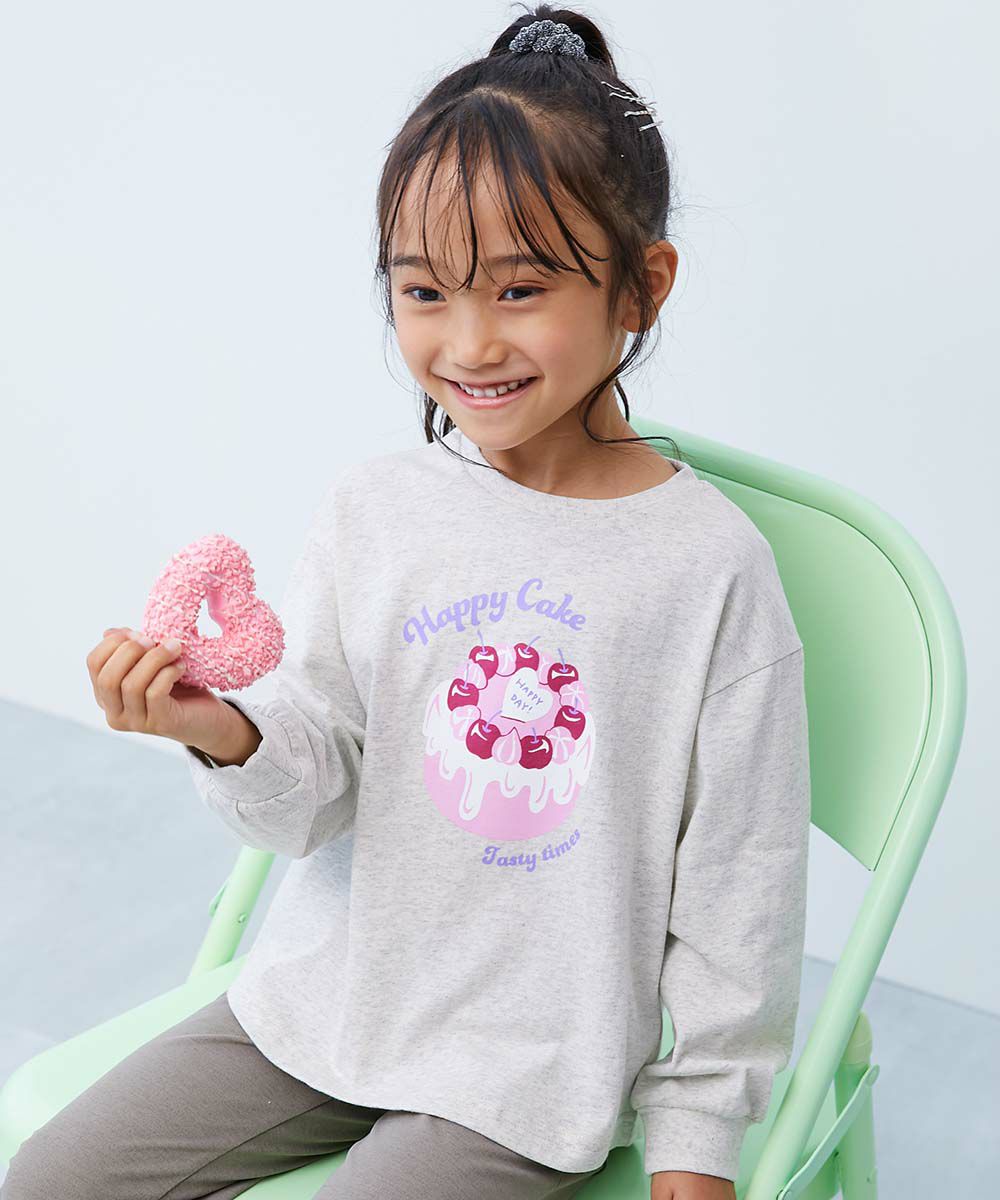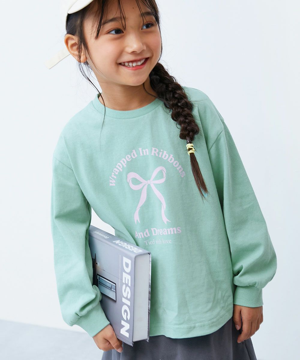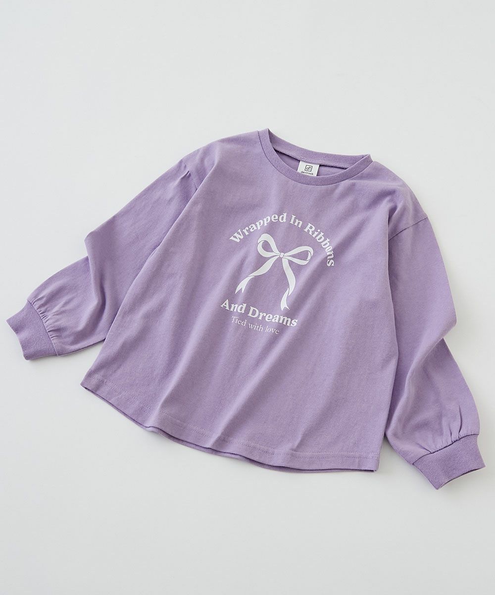 【最大30%OFF】綿100% デビラボ ガールズ プリント袖リブ 長袖Tシャツ
