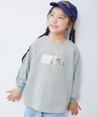 クールな印象の箔プリントは、甘さのあるアイテムと合わせて、程よく女の子らしいスタイルにするのがおすすめ。