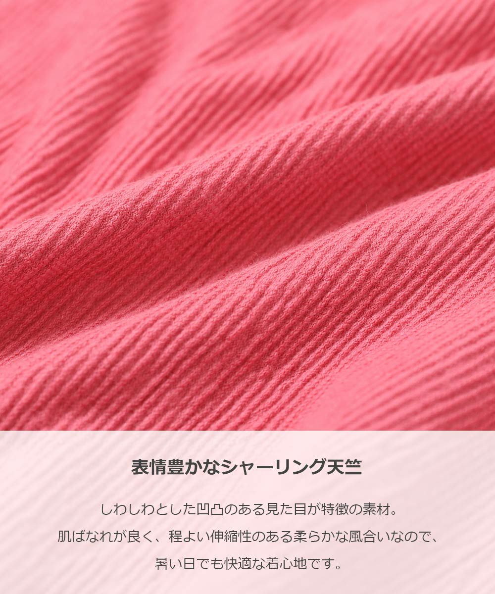肌ばなれが良く、程よい伸縮性のある柔らかな風合いなので、暑い日でも快適な着心地です。