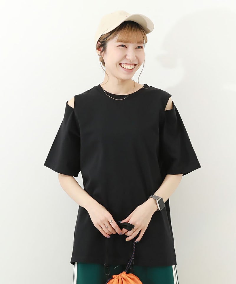汚してもイライラしない『【なつこさんコラボ】防汚 大人 肩スリット 半袖Tシャツ』