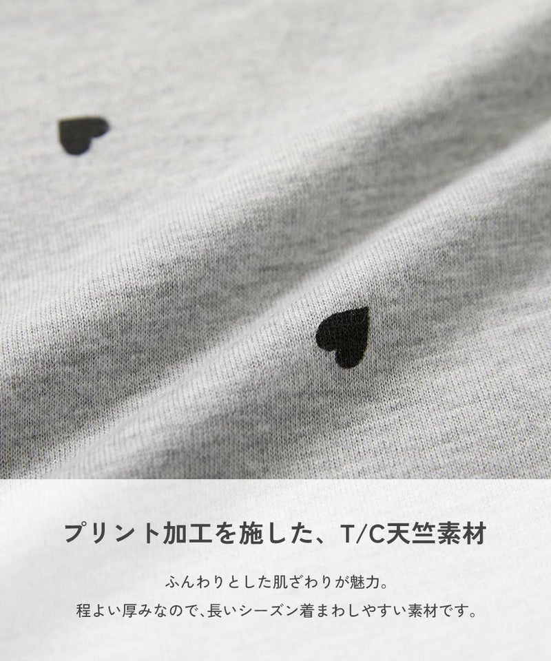 プリント加工を施した、T/C天竺素材 ふんわりとした肌ざわりが魅力。 程よい厚みなので、長いシーズン着まわしやすい素材です。 伸縮性:ふつう