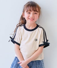 袖のラインとリボンデザインがかわいいポイント。 ミニ丈なのでトレンド感のある着こなしができるアイテムです。