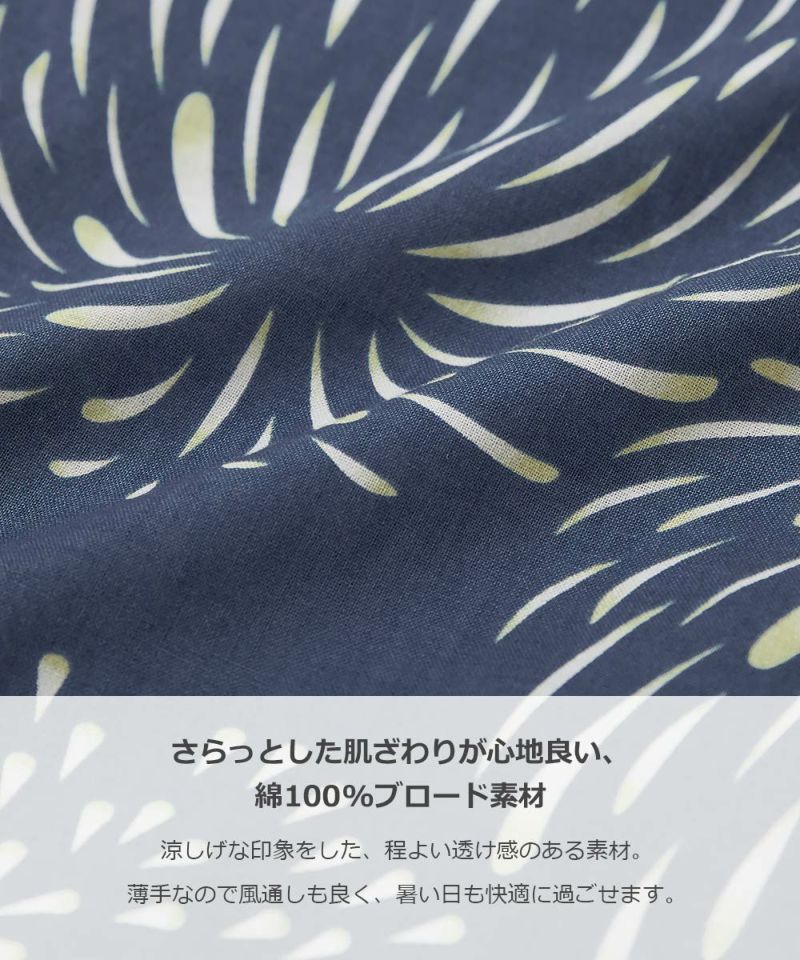 さらっとした肌ざわりが心地良い、綿100%ブロード素材 涼しげな印象をした、程よい透け感のある素材。 薄手なので風通しも良く、暑い日も快適に過ごせます。 伸縮性:なし