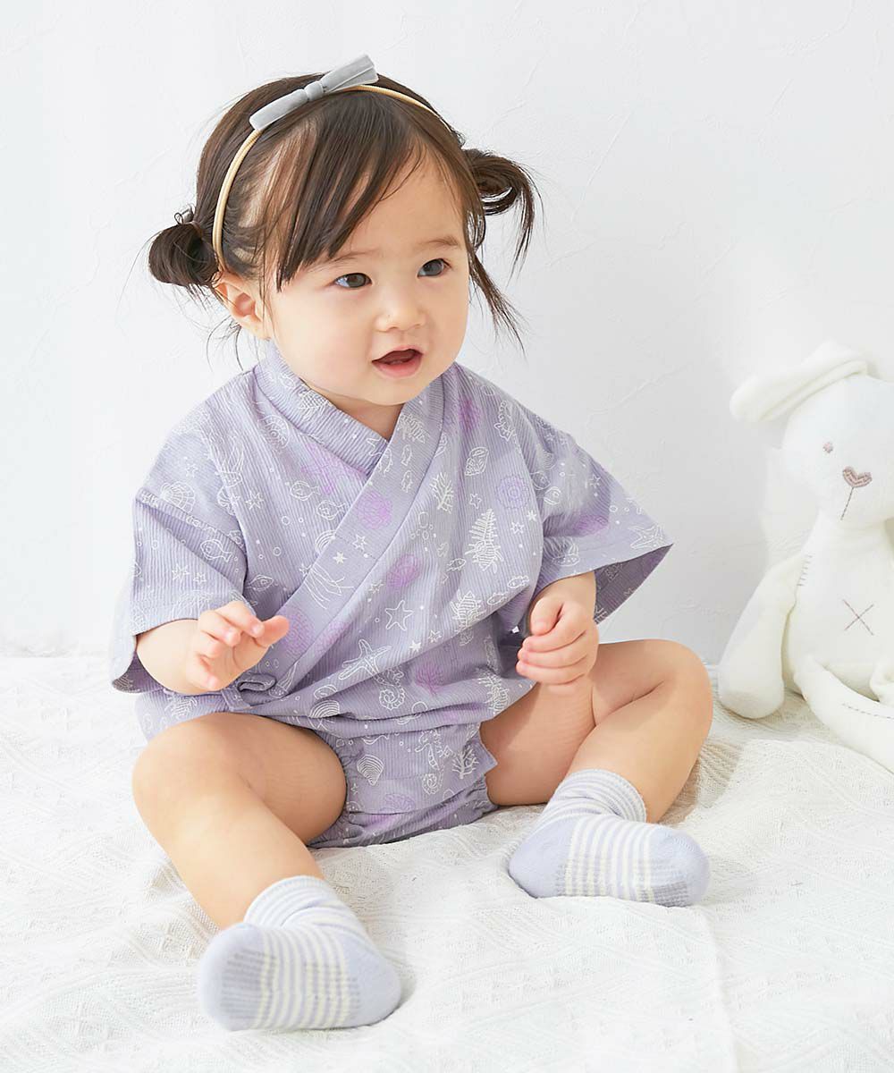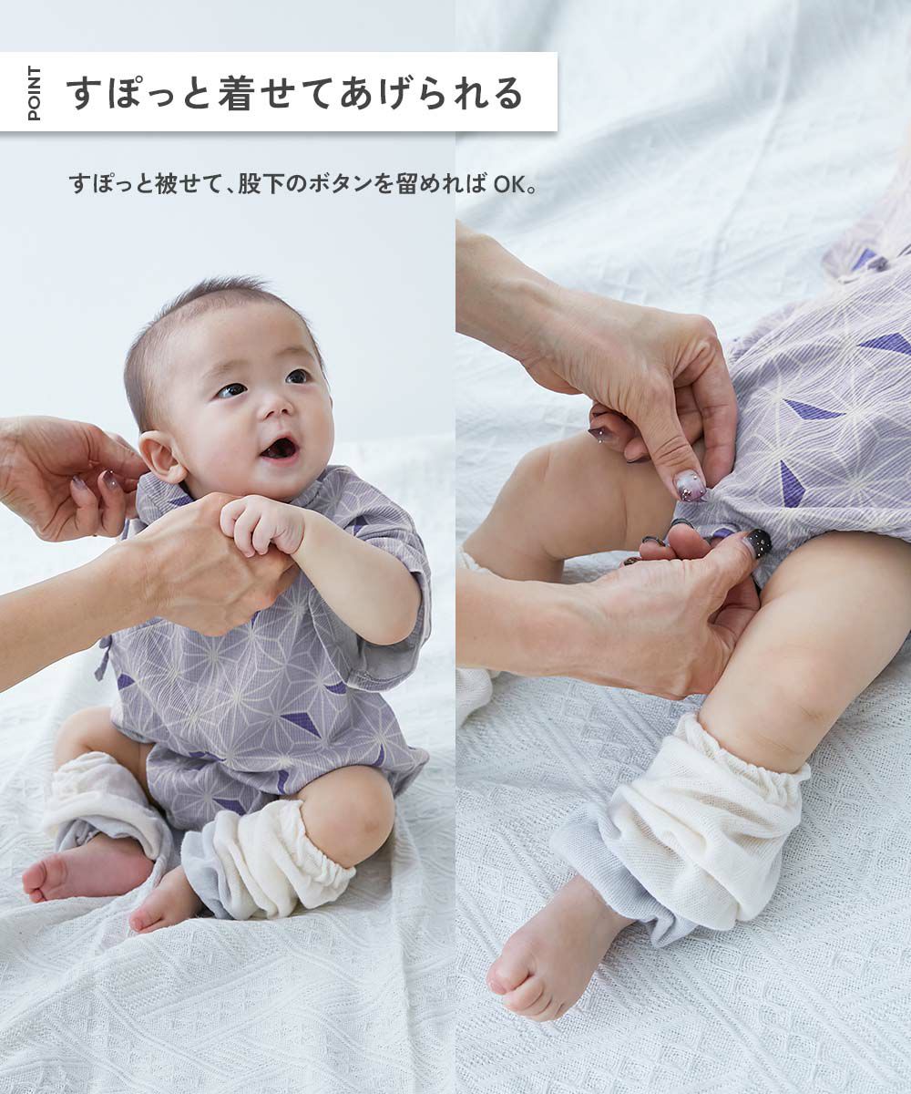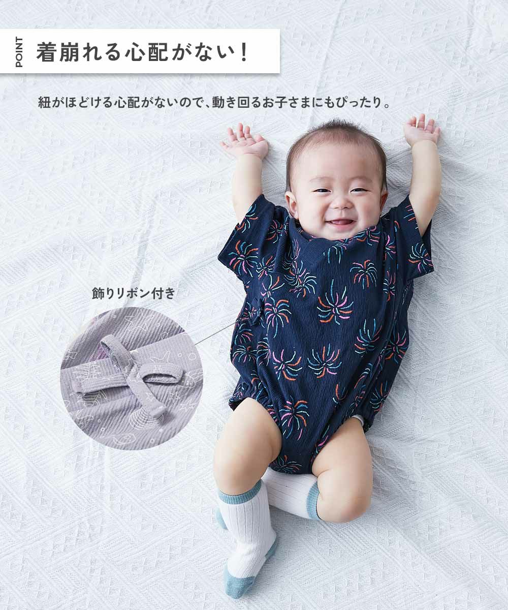 紐がほどける心配がなく、動き回るお子さまにぴったり。 ルームウェアとしても着用できる着心地の良さも魅力。 外でも家の中でも、涼し気に過ごせるアイテムです。