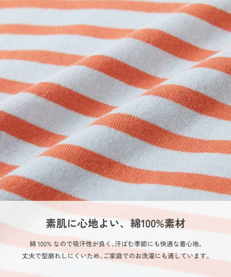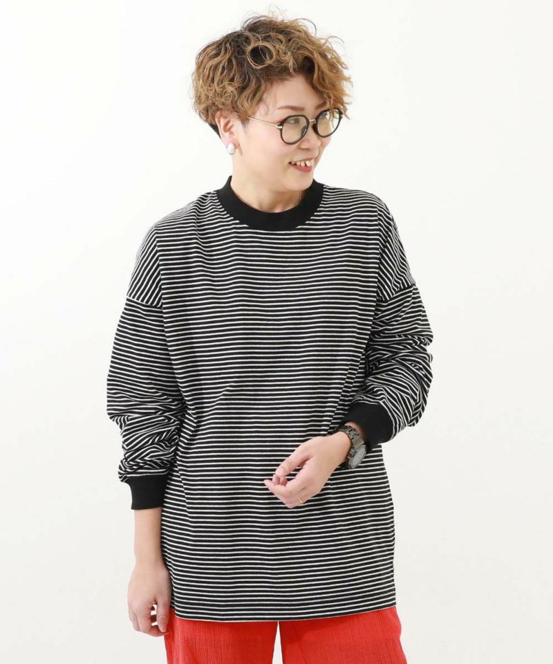 【最大14%OFF】綿100% お洗濯してもよれにくい ビッグシルエット 袖リブ ボーダー 長袖Tシャツ