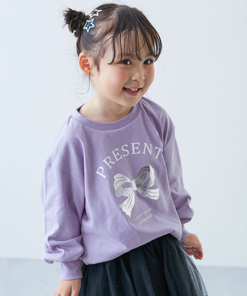 【最大7%OFF】綿100% デビラボ×【きらっとメタリック】 ガールズ プリント長袖Tシャツ