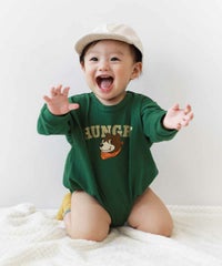 ゆるっとかわいい『綿100% デビラボ ベビー プリント ゆったり 長袖 ロンパース』