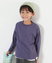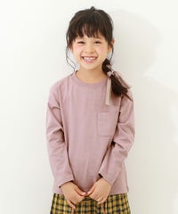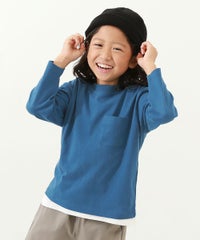 すっきり大人シルエットの『綿100% 無地 ポケット付き クルーネック 長袖Tシャツ』