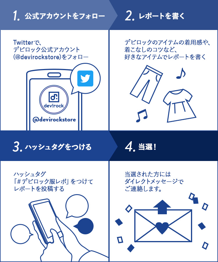 ・本キャンペーンにハッシュタグ「#デビロック服レポ」を付けて応募された場合には、本規約に同意したものとみなします。