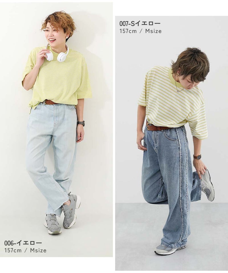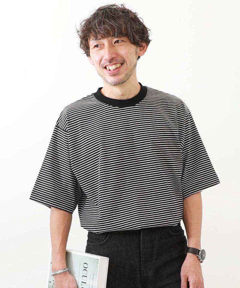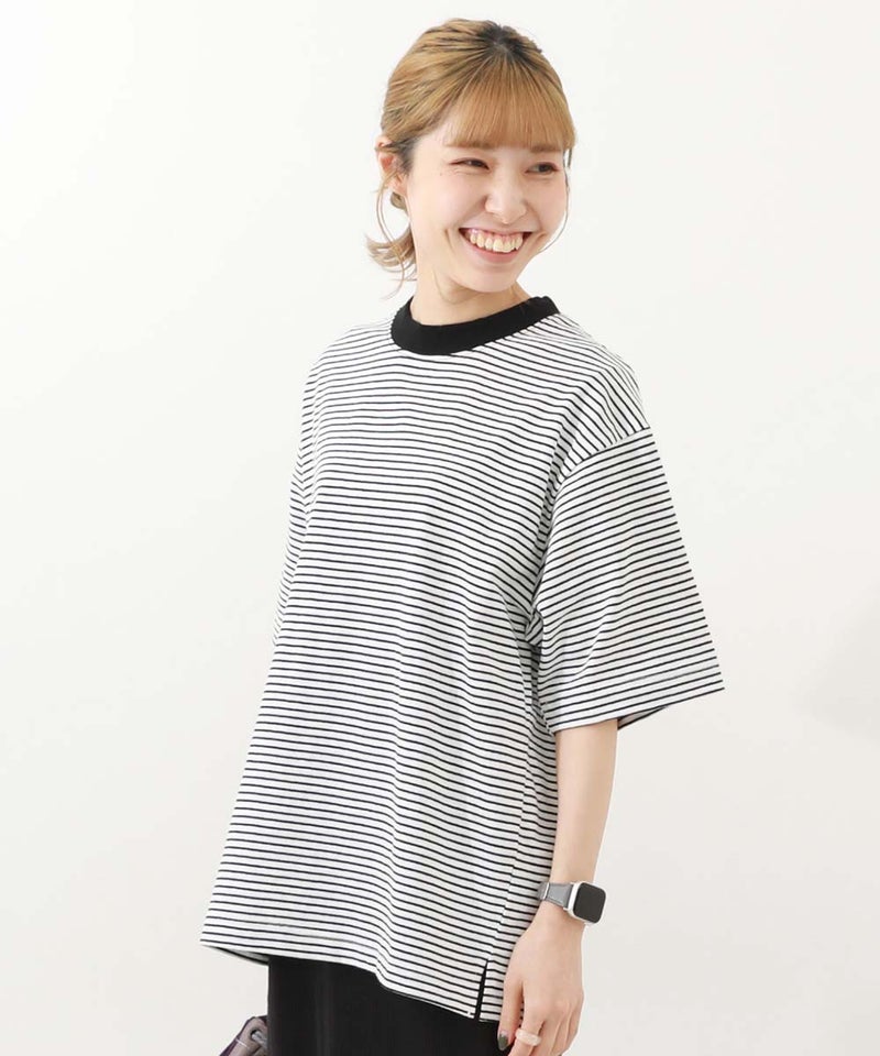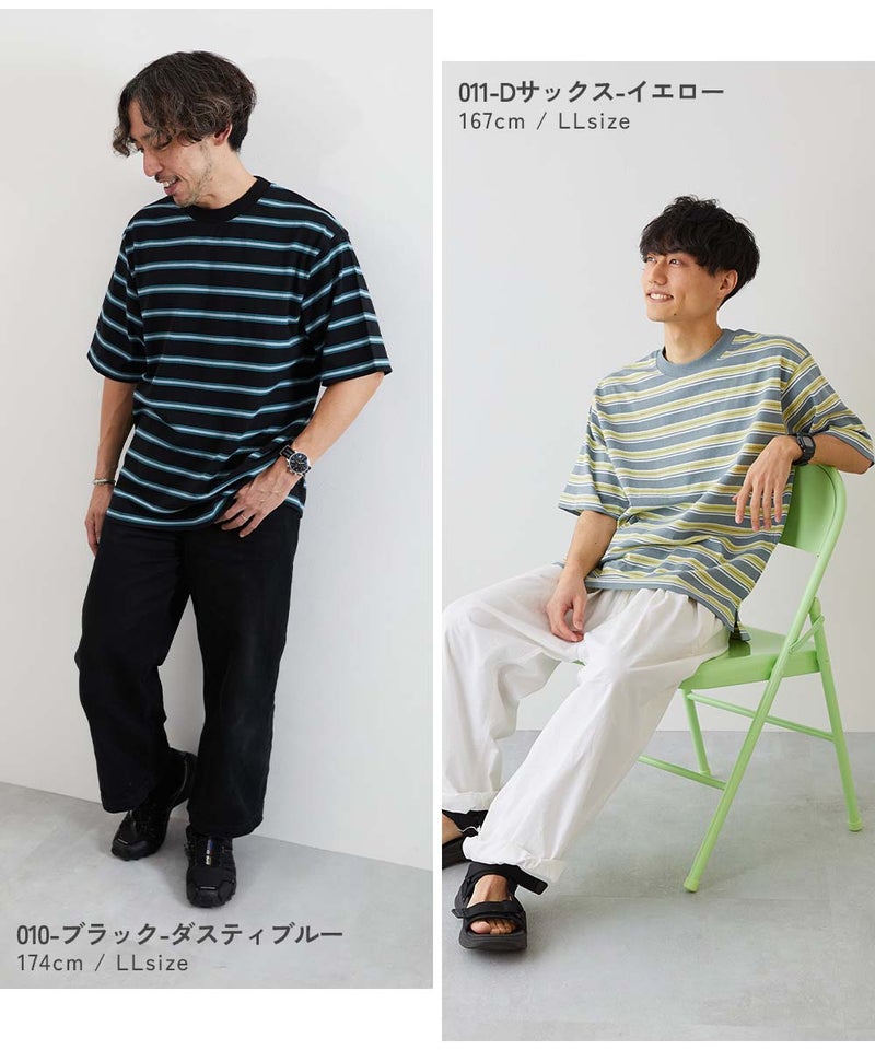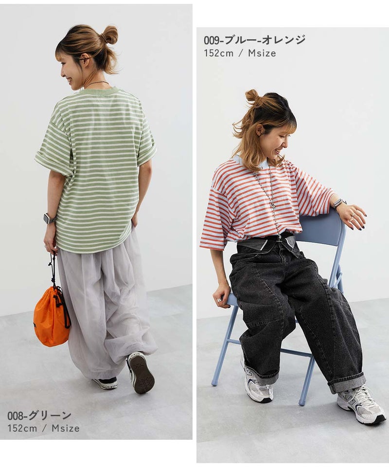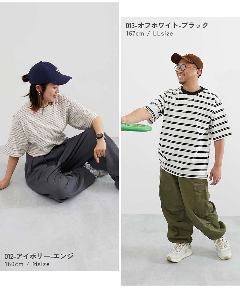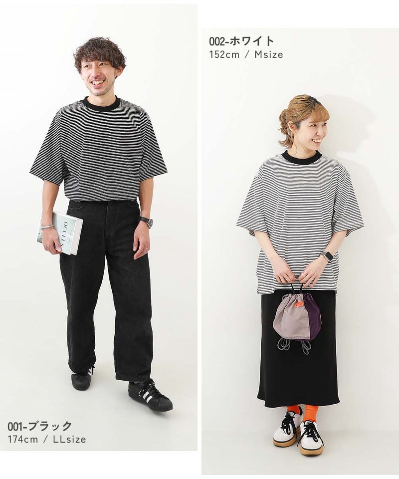 綿100% お洗濯してもよれにくい ビッグシルエット 大人 ボーダー 半袖Tシャツ